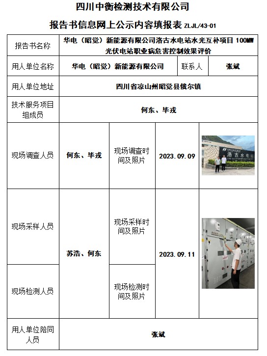 華電(昭覺)新能源有限公司洛古水電站水光互補項目100MW光伏電站職業病危害控制效果評價