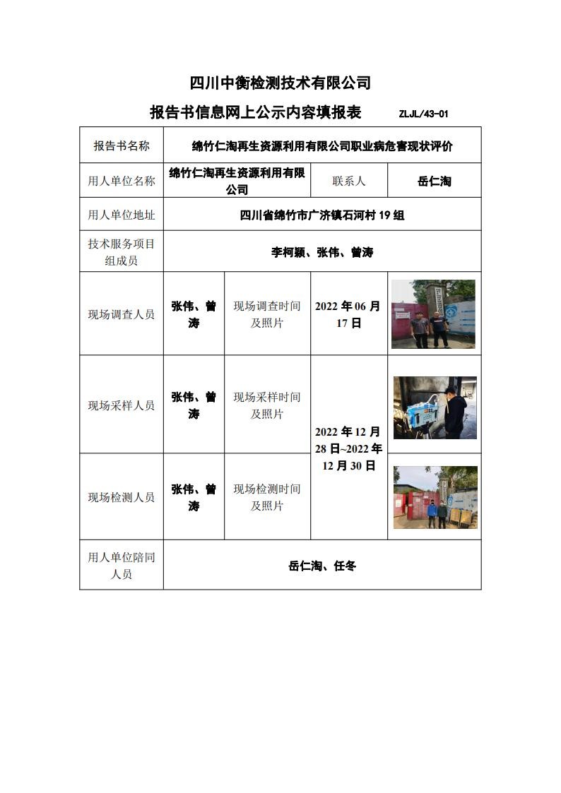 綿竹仁淘再生資源利用有限公司職業(yè)病危害現(xiàn)狀評(píng)價(jià)