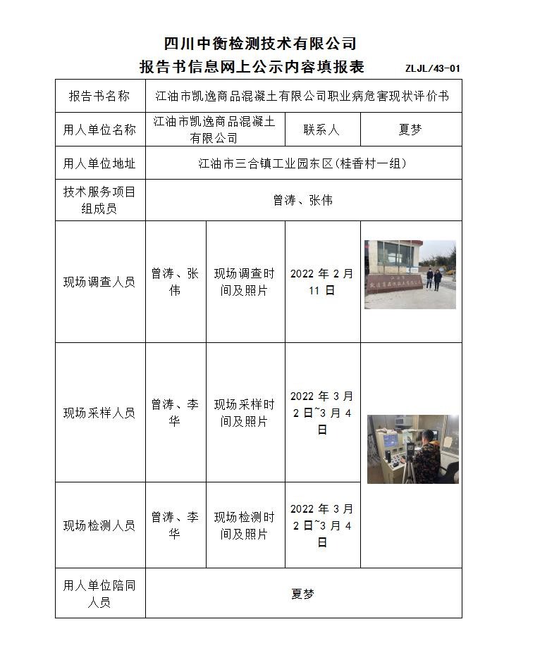 江油市凱逸商品混凝土有限公司職業(yè)病危害現(xiàn)狀評(píng)價(jià)