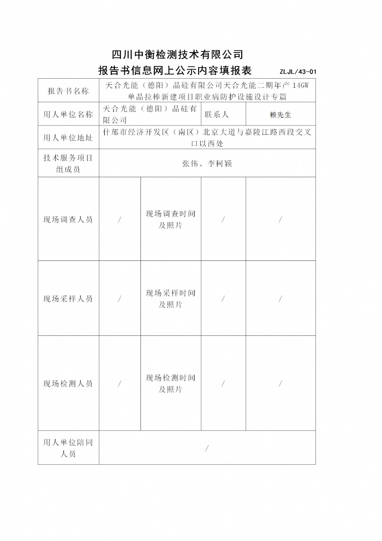 天合光能(德陽)晶硅有限公司天合光能二期年產14GW單晶拉棒新建項目職業病防護設施設計專篇