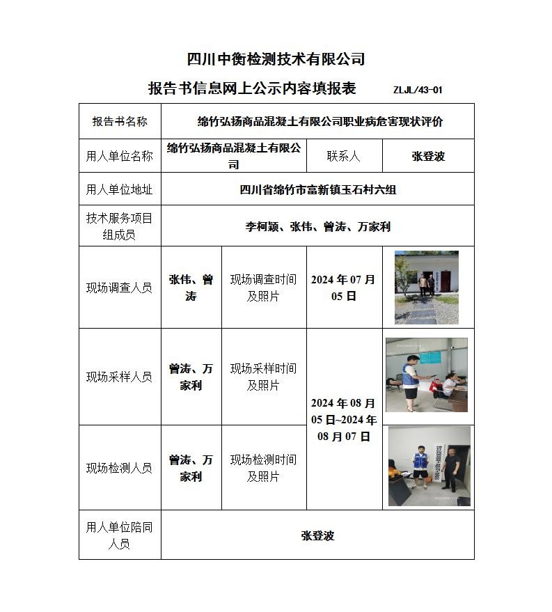 綿竹弘揚商品混凝土有限公司職業病危害現狀評價