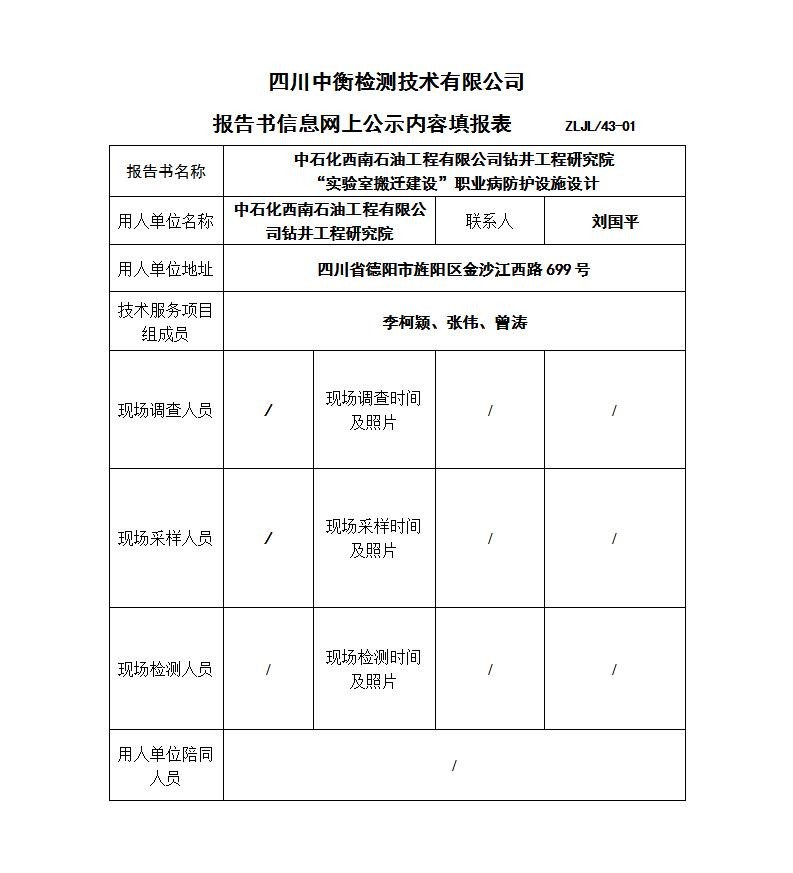 中石化西南石油工程有限公司鉆井工程研究院“實驗室搬遷建設”職業病防護設施設計
